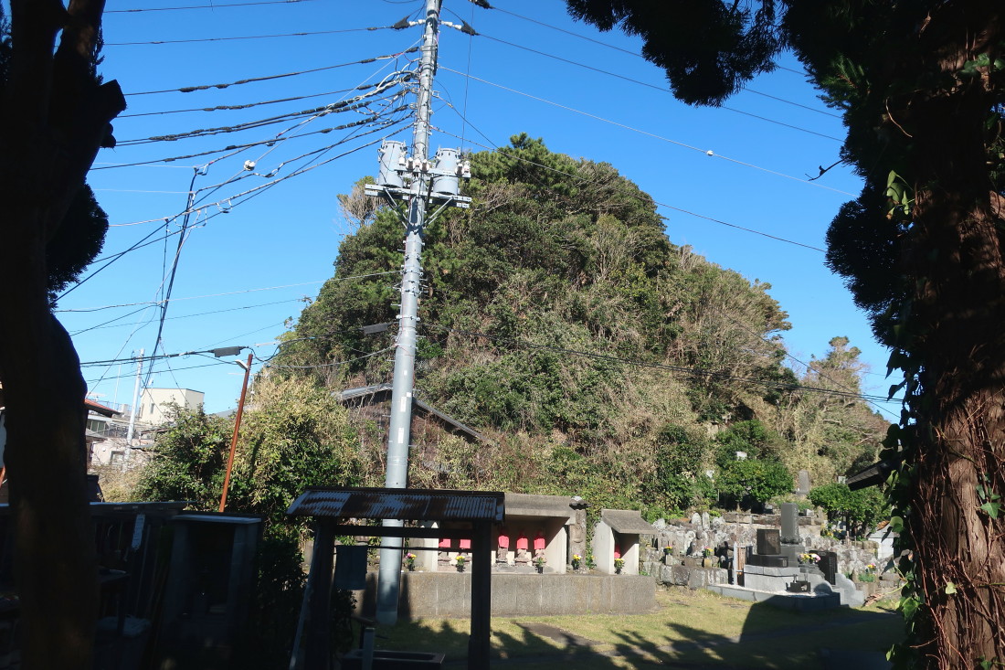 | 「伊東祐親入道供養塚」…供養塚は石を重ねた簡素なものだが雰囲気はありますね。しかし、冬なのに草が大きく伸びており近づかないと存在も分からないぐらいだった。 |
