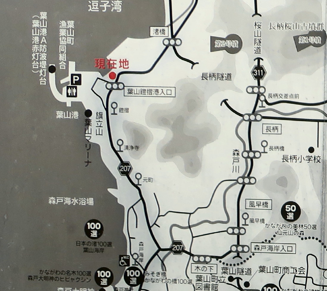 | 「葉山港」、「鐙摺葉山港」などへの道標… |