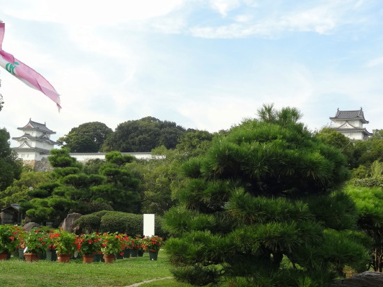 | 明石城武蔵の庭園から両櫓を松の木越しに見る… |