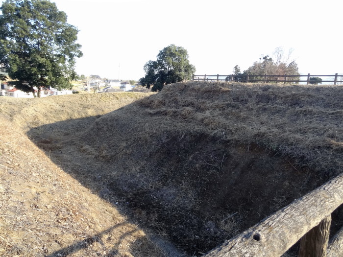 | 空堀に架かる橋の上から南側を見る… |