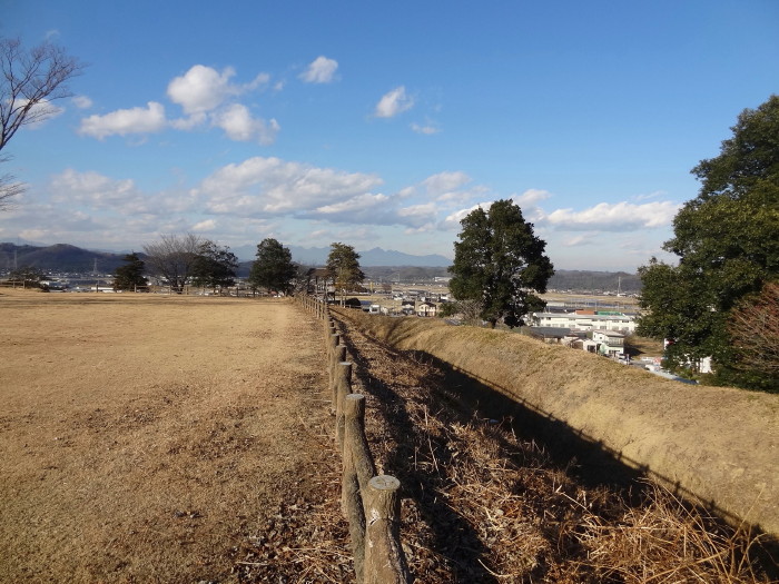 右側は東側、最初に入って来た案内板があったところ。遠くに物見櫓が見える… |