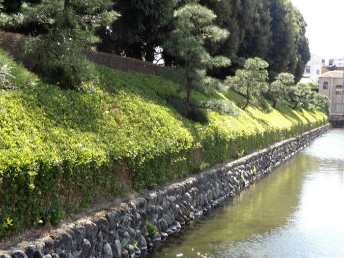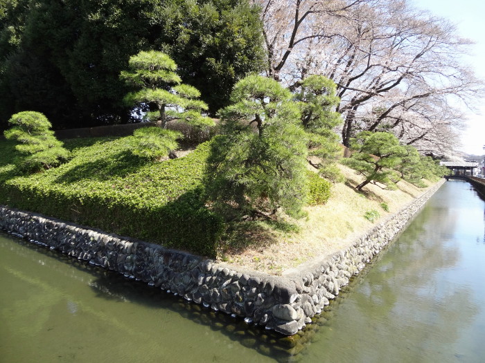| 右が南門(桜門)、左が西門方向の堀 | ||