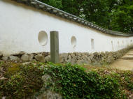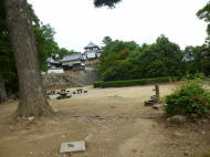 | 二の丸内にあった雪隠、トイレとしてだけでなく戦闘用にも使ったとか | 右、天守、このアングルが美しく見えると思うのだが? | 天守に入る前に石垣の右側の道を進み周囲を先に見た | |