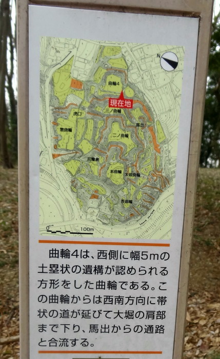 | 三の丸方向への標識 | 曲輪四の標識 | 曲輪四の説明 |