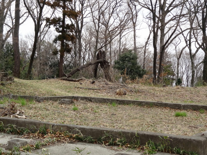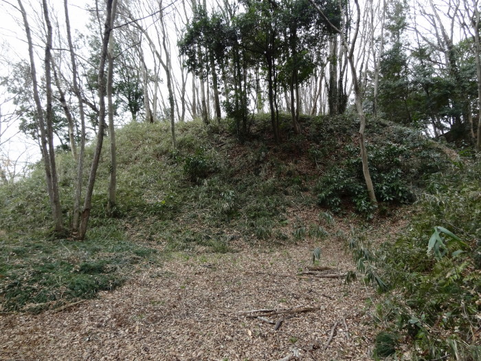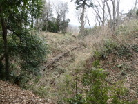 | 同じく空堀の底だが、整備されていなくて樹木が大きく成長している | 曲輪五相当部分か | 五曲輪の端の部分…この先は開発されている |