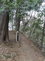 改めて城址を見上げる…城址碑が見える | 本丸方向への標識だが、大手門とか 虎口とか何ら痕跡なし… |