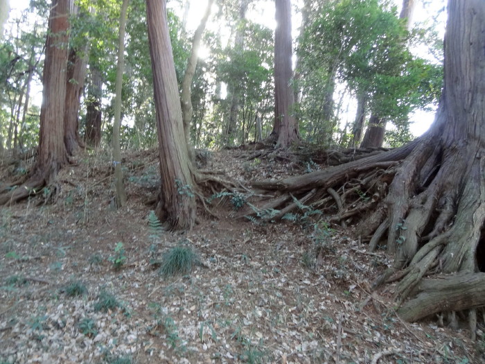 | 上の写真と下の写真は、本殿裏の低くなっているところで…腰郭や土塁が一部残っている |