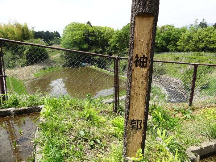 | 本丸に来ると、一面に広がる田植えが終わったばかりと思われる水田がきれいだった。この城は、他の郭も水田・畑・茶畑になって利用されている。言い換えれば、民間所有の土地であるところを教育委員会などと連携している?…「私有地であり立入禁止」となると折角の遺構が見られないので、見学する方も所有者に感謝しつつ十分配慮して訪ねるべきか。 | ||