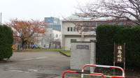 上越市立古城小学校正門…ここに福島城跡の看板が(下の写真) |