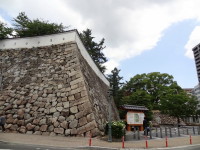| 高い石垣だが、区画整理、ビル建設等で、多くの石垣が破壊されており、このへんも模擬復興だろう | ||