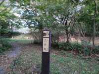 | 本丸への喰い違い虎口(本丸北虎口)…左右に土塁がある。この喰い違い虎口は近代の改変で往時の様子はよくわからないとのこと ※縄張図標示 | 虎口の左側に「本丸」の標示柱…虎口左の土塁に上がれる | |