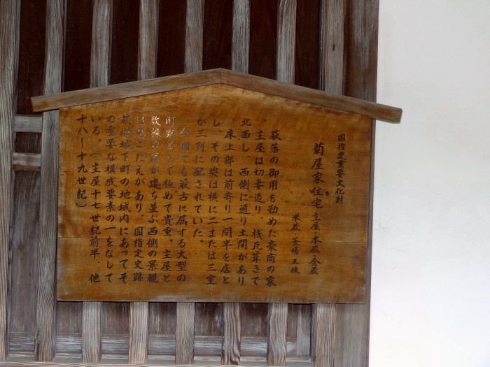 | 国指定重要文化財・菊谷家住宅…全国でも最古に属する大型の町家として極めて貴重等の説明がなされている。 | ||