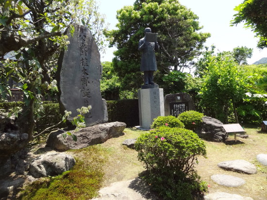 | 東行(高杉晋作』先生初湯井… | 旧宅の中庭だが外から見えるのみ… | 近くの公園に設置の高杉晋作像… |