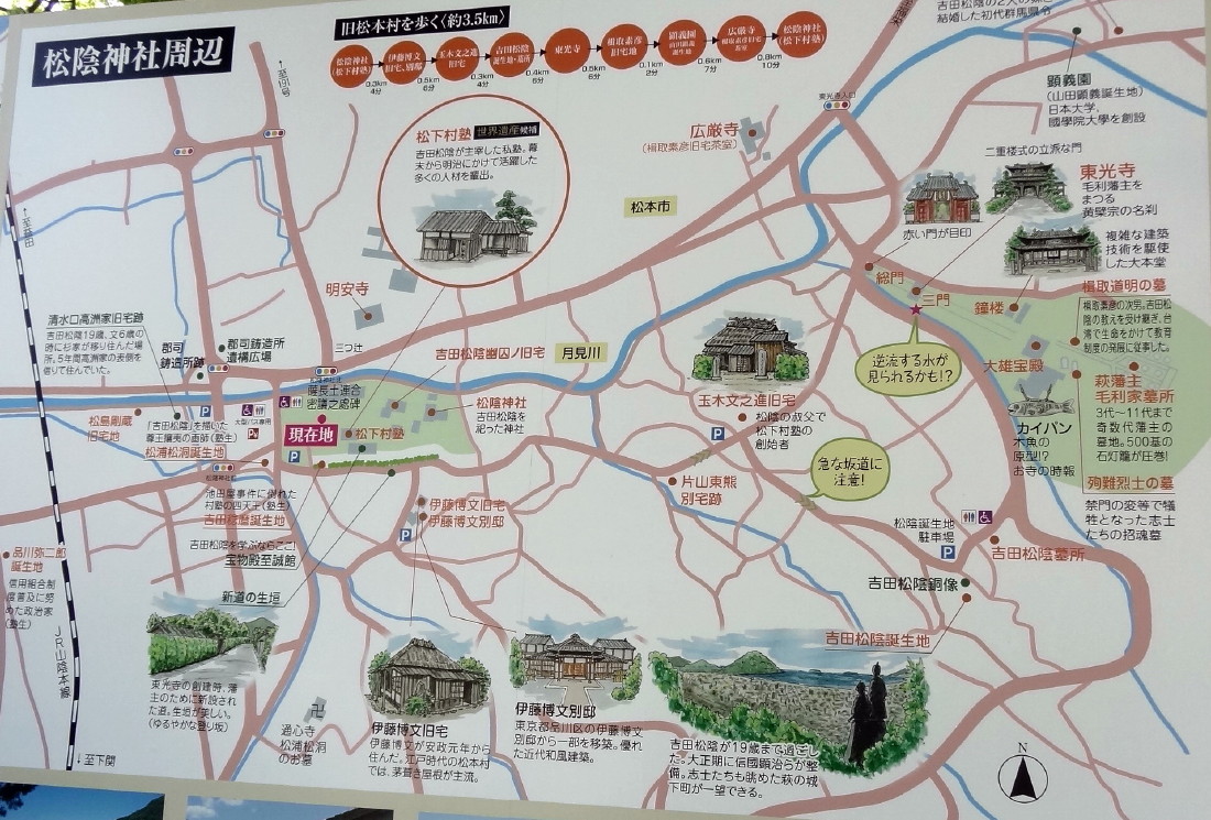 | 松陰神社周辺の案内図…神社境内入り口に設置されていた | 松陰神社境内図… | |