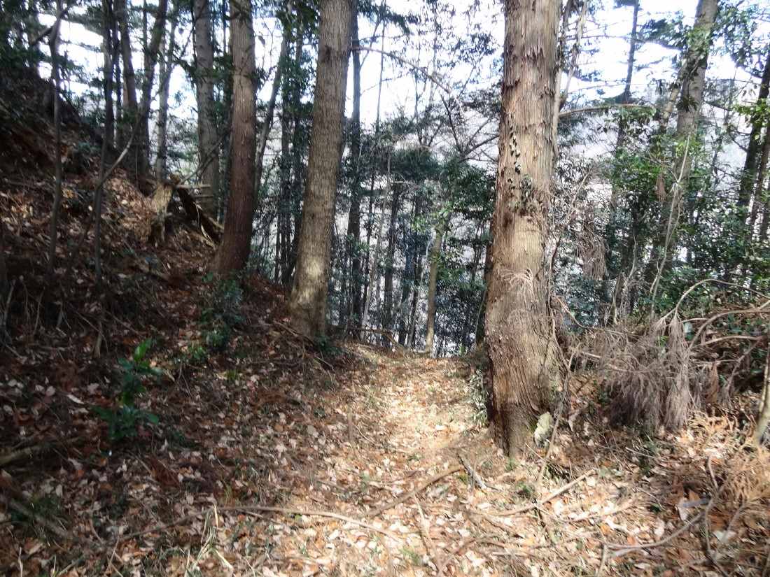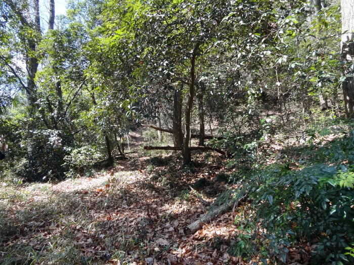 | 「堀1」を降りてきたが、神社が近づいてくると竪堀の形状がかなり浅くなってきた… |