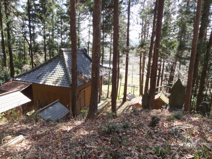 | 少し上がって振り返ると諏訪神社の拝殿が下に見える… |