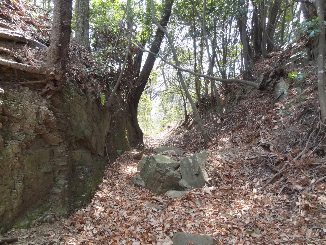 「堀3」の底道を上がる…もうすぐ主郭の下の腰郭か? |