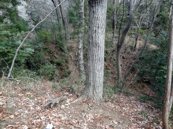 | 「堀2」と思われるところを見上げる…この辺は余り堀の形を留めていない |