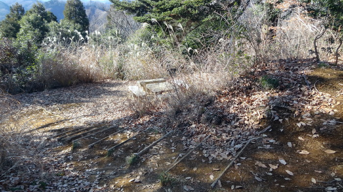 | 東京都水道局「初沢配水所」のタンクを横に見て、尾根道をさらに進んでみた…土橋・堀切跡と思われる個所があった | 削平地があった…郭跡? | |