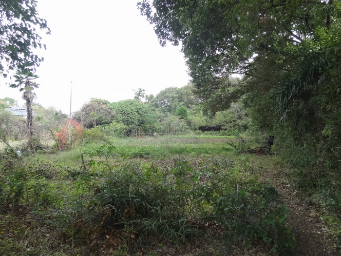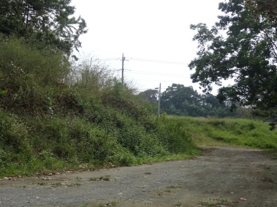 | 土塁があったとも割れるこんもりした森のようなところ。地元の人に聞いたところ、こちら側からのアプローチは無理で、以前あった土塁も今ではわからないだろうとのことだった… |