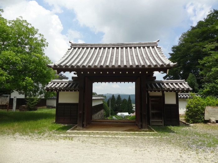 | 左折のところで、下を振り返り見る…左に休憩所が見える | 左折してまっすぐ上がると、土岐門…内側は馬出状の郭に | ||||||