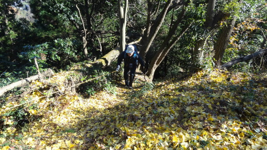 | 乾燥した落ち葉がたくさんあり非常に滑りやすかった… |