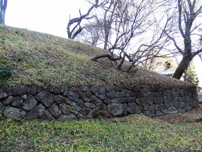 | 石垣の先の突き当りで「城跡」方向へ行く… | ||