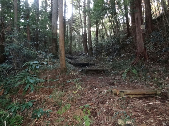 | 堀切から上の段の郭群へ…この上が中城。<この写真ちょっとピンボケでした、ごめんなさい> | ||