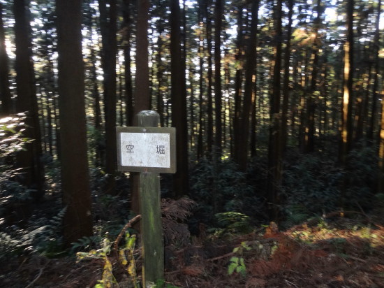 | 右の写真のところから更に北側に進む…まだ昼間(14:00頃)なのに暗い。 | 塩倉跡の標示柱… | |