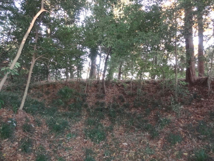 | 右の写真の先にこの空堀の最後のところ、左の写真に続く… | ||