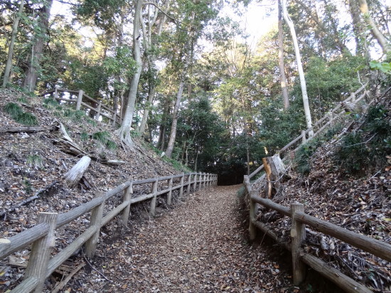 | 本郭に上がって、住宅街方向を見る…入間川方向でもある | 左上のところから本郭に上がる… | |