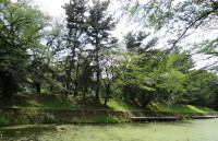 | 先程、この土塁の上を歩いてきた…ここで切れている | 三の丸から、本丸を左に見て内堀に沿って東南方向へ歩く… | |