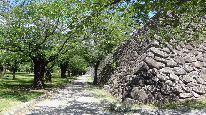 石垣から降りて、石垣及び馬場を見る…桜の季節はきれいでしょうね! |
