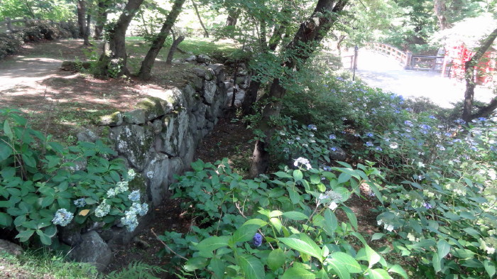 展望台への橋の下に、「水の手不明御門跡」(みずのてあかずごもんあと) | |