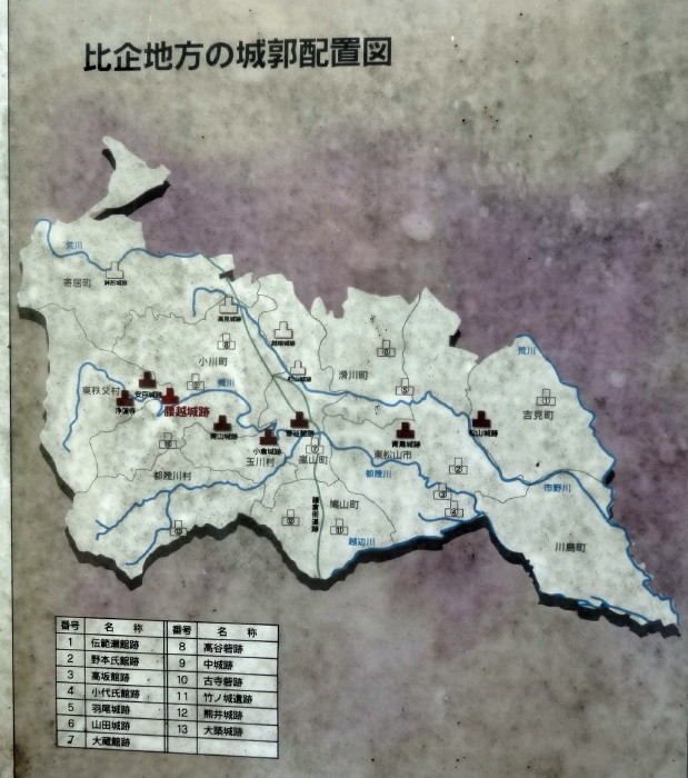 | 小川町教育委員会が本郭の北側端に設置の城址碑・案内板… |
