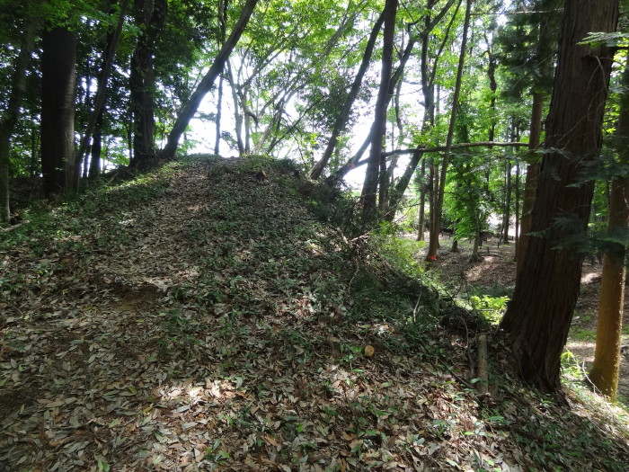 | 南北の土塁上を歩く…右側に空堀が続く |