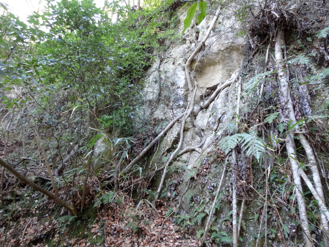 怒田尾根の最初に遭遇したでかい堀切…削った岩盤の迫力が凄い |