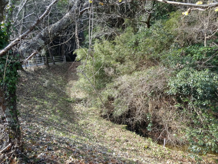 | 堀切の底を見ると…結構垂直的に削られていて危険。下に回って降りる。 |