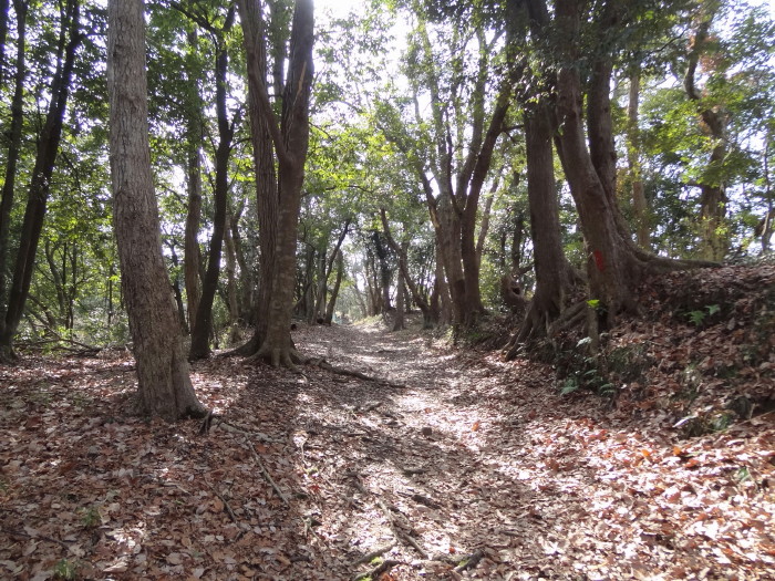 舗装道路途中で探鳥路を通り、二の丸・資料館へ尾根道を行く… |