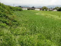 | 右上の写真の場所(左側)の虎口に繋がる土橋部分(木橋が出土した由)。奥と手前にはかなり広い堀跡が… | 東虎口の南側端…左側には左上の写真の土橋から神社方向へ入る場所になる | |
