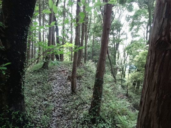 | 上の写真の場所から、左(北)方向へ行くと、これは空堀の残存か?不詳。 | ||