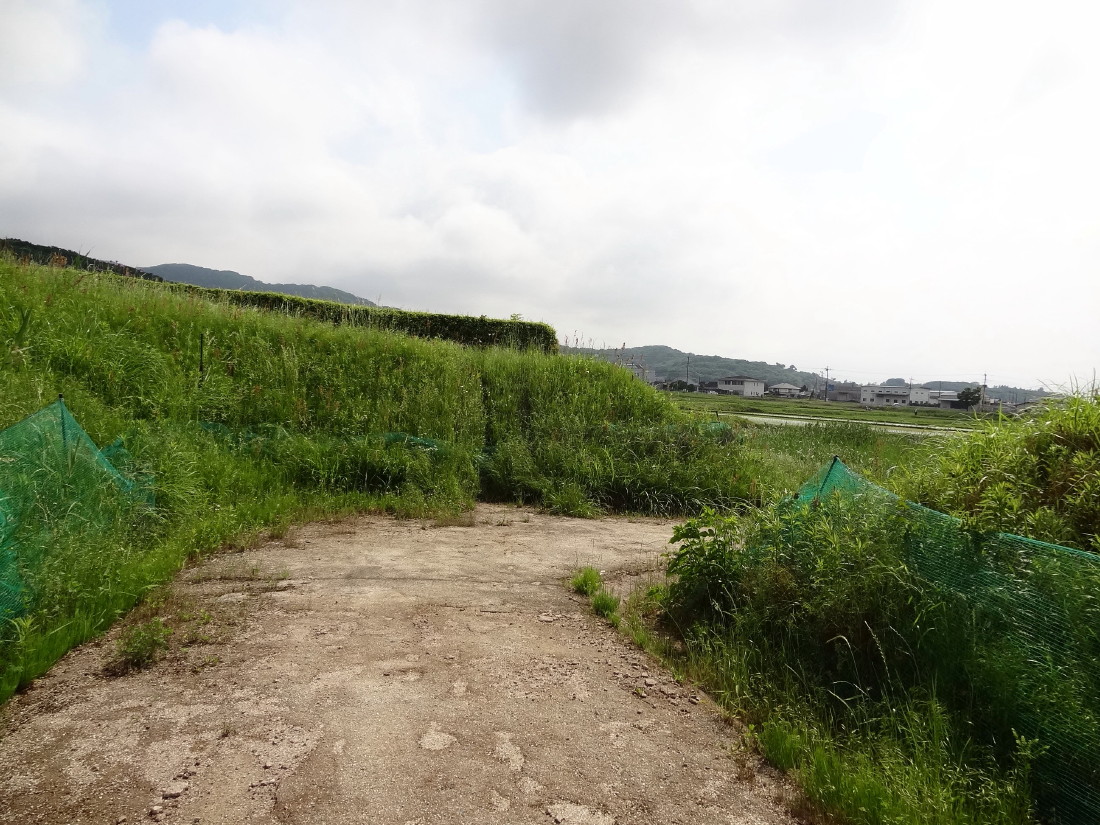 | 鹿島神社入口付近から南方向を見る…左側に土塁の列が見える。 | ||