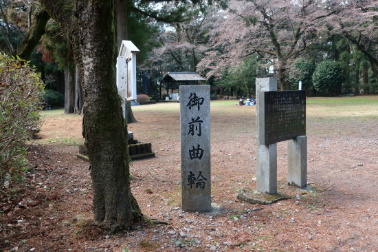 | 新郭から搦手口・二の丸方向へ行く。右端の写真の「稲荷郭・丸馬出」からこの道標のところに出てきた… | ||