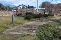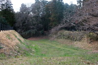 | 本丸全景…周囲に土塁の名残のような土手が見える(このうち右の写真の東側部分がやや高い)。 | 本丸から御前郭への途中の左側に大きな堀跡が…本丸北虎口を出て御前郭入り口(虎口)へ。 | |