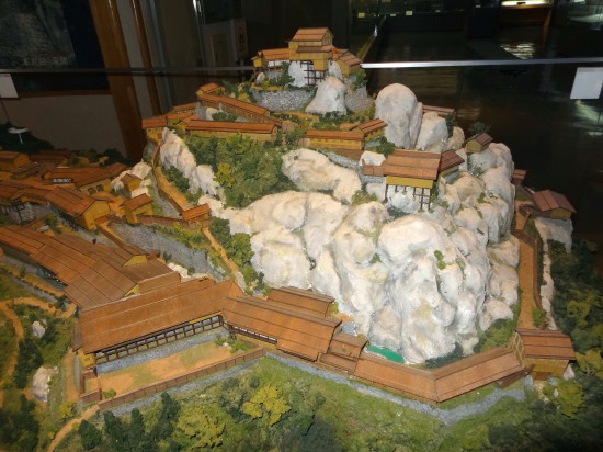 | 苗木遠山資料館に展示の「苗木城模型」…1871年に廃城になるまで遠山氏12代の居城だった | ||