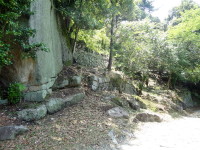 | このルートもあちこちに石垣が…道はやや狭くなった。雨上がりだったので、多少落ち葉が濡れて滑りやすかったが | ||