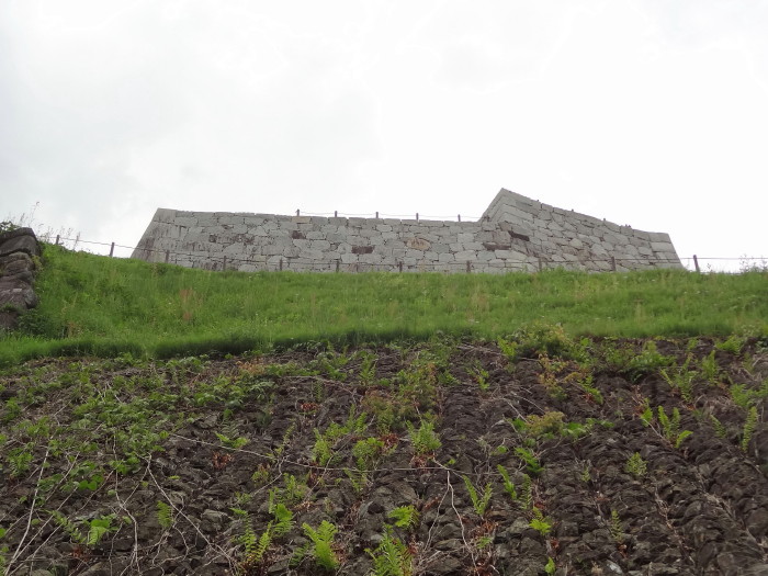 | 本丸に続く通路 | 大石垣と、その上の本丸の石垣壁を見る | ||