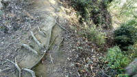 | 親水池方向へ降りる道…帰りはここから降りた。横矢のかかった堀切? |