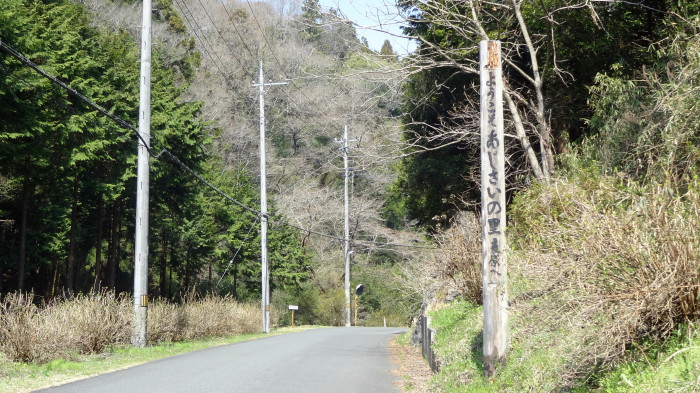 | バス停ののところに案内板…「あじさいの里」を目指す |