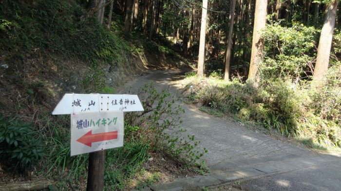 左方向が城山方面…ここから山道に入る。比較的歩きやすい。 |